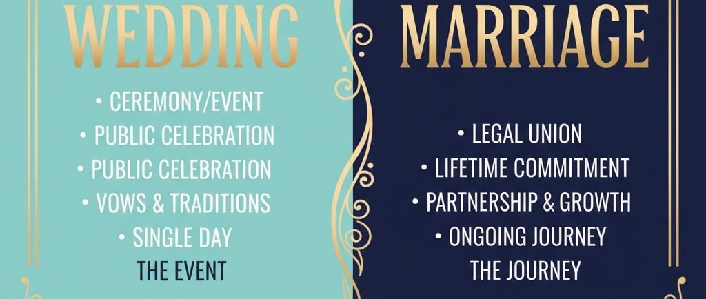 Marriage, on the other hand, is the legal and social union between two people. It's an ongoing relationship, a partnership, and a commitment that typically lasts a lifetime.