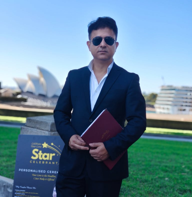 Welcome! I’m Star Celebrant, and I don’t just officiate weddings; I weave worlds together. In a city as gloriously diverse as Sydney, love stories are written across cultures, traditions, and continents. My speciality is crafting and conducting authentic, meaningful, and legally perfect ceremonies that honour your unique heritage while celebrating your shared future here in Australia. I also effortlessly blend English, Hindi and Punjabi to honour these cultures in Sydney's fusion weddings.